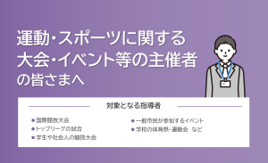スポーツ庁『運動・スポーツにおける安全対策ガイドライン』公開のお知らせスポーツ庁より、「運動・スポーツにおける安全対策の評価・改善のためのガイドライン」が公開されました。本ガイドラインは、地域や団体でのレクリエーション活動を含む、運動・スポーツ場面における事故防止や安全管理の考え方を整理したものです。スポーツ・レクリエーション関係団体や指導者の皆様にも参考となる内容ですので、ぜひご覧ください。
